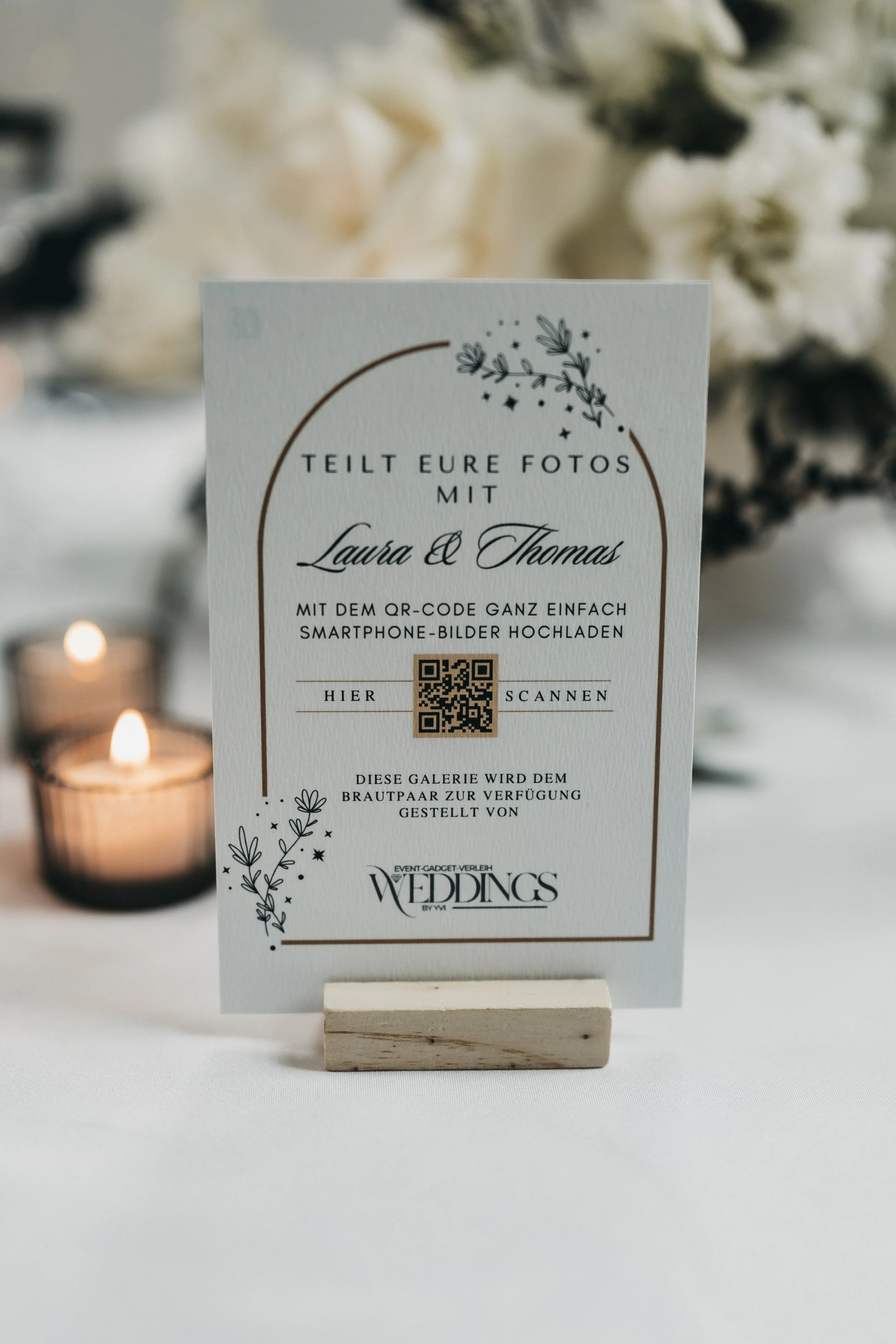Mit der Gästegalerie per QR-Code sammeln eure Gäste ihre Smartphone-Fotos direkt auf eurer Feier.